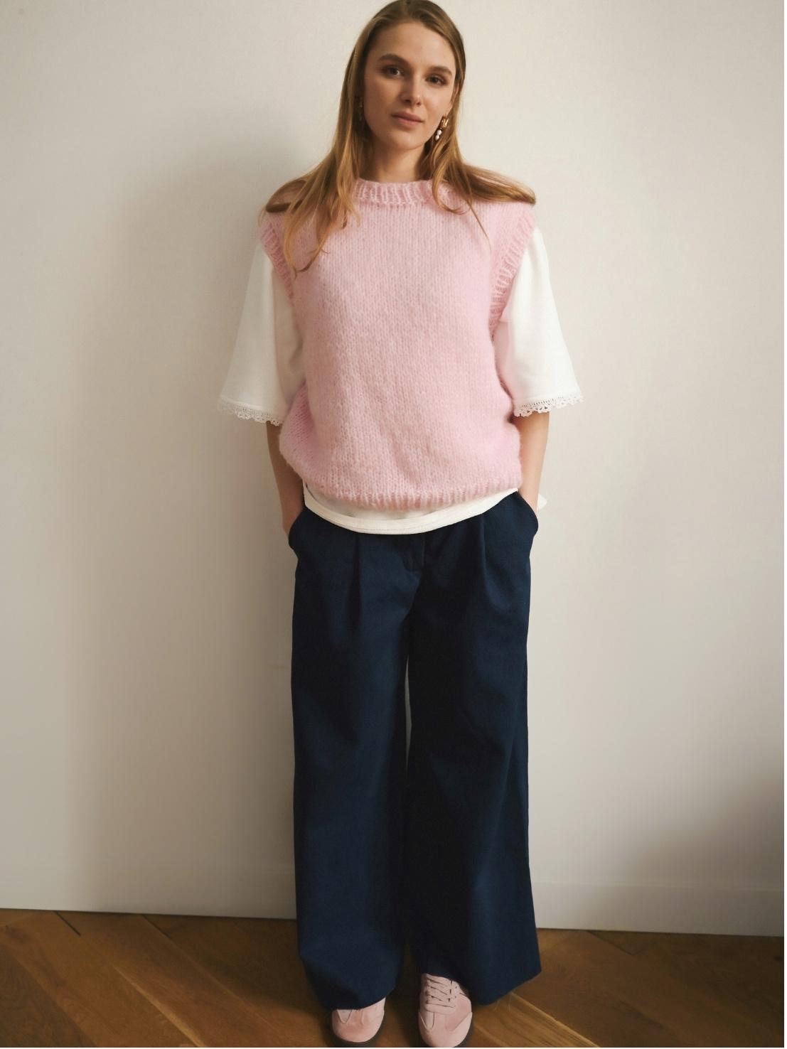 Hand-knitted Pink Mohair Vest: Women's Cozy Knitwear